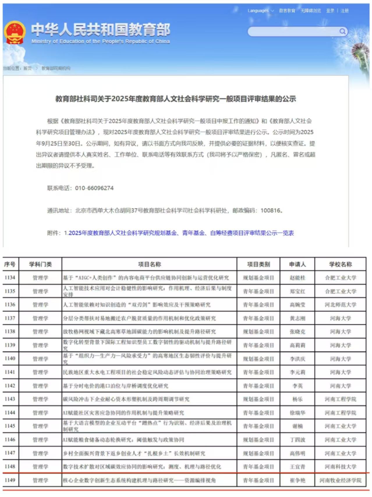 2025年9月25日,教育部社科司公布了2025年度教育部人文社会科学研究一般项目立项名单,伟德bv国际体育崔争艳博士主持的青年项目《核心企业数字创新生态系统构建机理与路径研究——资源编排视角》获得立项。该项目从资源编排的理论视角出发,深入探究核心企业如何构建与演化数字创新生态系统,具有重要的理论前沿性与实践指导意义。